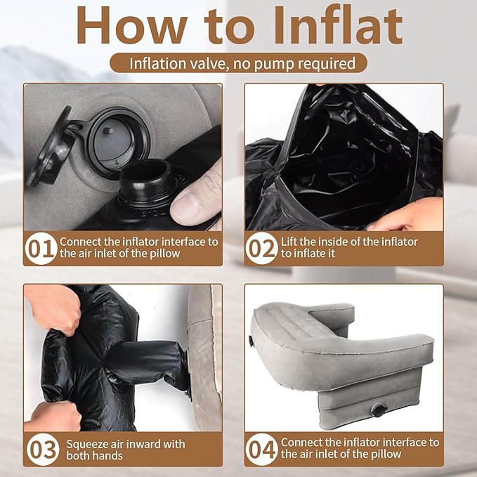 - 【Inflatable Reading Pillow for Gaming】Smart design of the inflation valve, no pump required, durable material and non-slip cabinet liner. only take 30 seconds to be a gaming pillow to provide support, deflate by hand release the air only 3-5 seconds and pack in a compact zipper bag, easy to move and take anywhere, Say goodbye to bulky memory foam desk, lightweight and maneuverable.