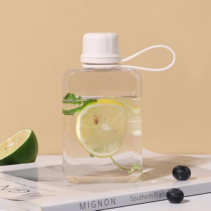 Tritan Transparent Flat Water Bottle samll Water Bottle Slim Square Pocket Bottle Water Flask, BPA Free/Slim Design/Leak Proof Water Bottle for Travel, Outdoor, Sports, Camping (White, 240ML)