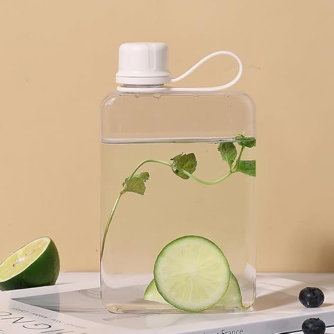 Tritan Transparent Flat Water Bottle samll Water Bottle Slim Square Pocket Bottle Water Flask, BPA Free/Slim Design/Leak Proof Water Bottle for Travel, Outdoor, Sports, Camping (White, 500ML)