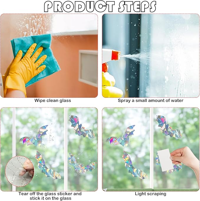 - 【Simple Use Steps】It is very simple to use this bird window strike prevention. First, clean the glass and spray a small amount of water, then tear off the required pattern from the sticker and stick it in the right place. Wipe with a card or other smooth tool to make the sticker close to the glass surface without bubbles. The whole process does not require additional tools and can be completed in a few minutes.