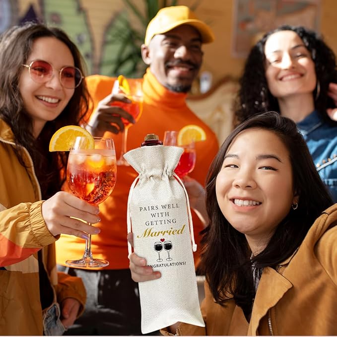 Engagements Gift Burlap Wine Bags Gift for Woman Friend Bestie BFF Couples Bride Groom, Reusable Wine Gift Bags with Drawstrings for Wedding Party Decoration Thanksgiving Christmas Home Storage - 09