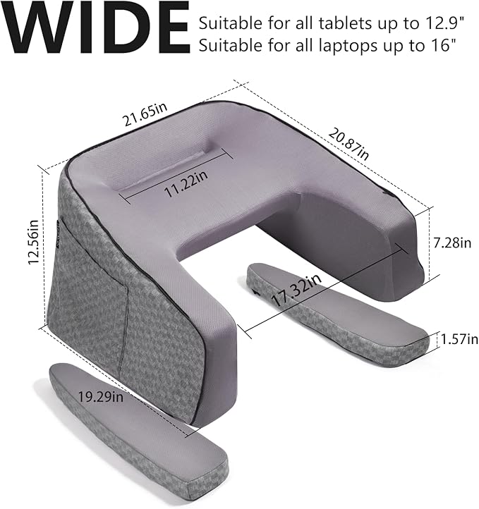 - Multifunctional Surface: Features an 11.22-inch slot that supports most tablets on the market, freeing your hands for a comfortable viewing experience. The stable desktop surface can hold laptops, knitting projects, books, etc. It can be used as a lap desk, gaming pillow, reading pillow, nursing pillow, and more, suitable for work, reading, gaming, watching TV, and crocheting.