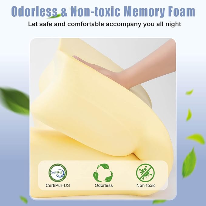 - 100% Slow Rebound Memory Foam:Certified by Certipur-US,our neck pain relief pillow offers durable,consistent support.The formaldehyde-free,odorless memory foam ensures health and safety,effectively preventing shoulder,neck,and back pain