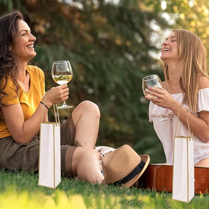 - Great Gift: our print wine bag features a classic white and gold foil design that will make a lasting impression. these elegant bags are perfect for packaging wine, champagne, whiskey, and more. each bag is carefully designed to securely hold your gifts and add a touch of sophistication to your presentation.