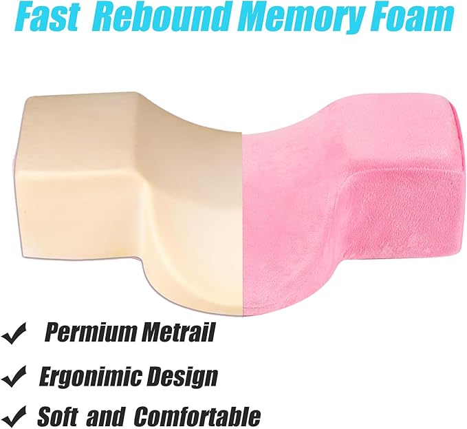 Salon Eyelash Extension Neck Pillow Memory Foam Lash Pillow with Neck and Back Support,Ergonomic lash Bed Pillow with Velvet Pillowcase Beauty Lash Pillow for Lash Extensions(Pink)