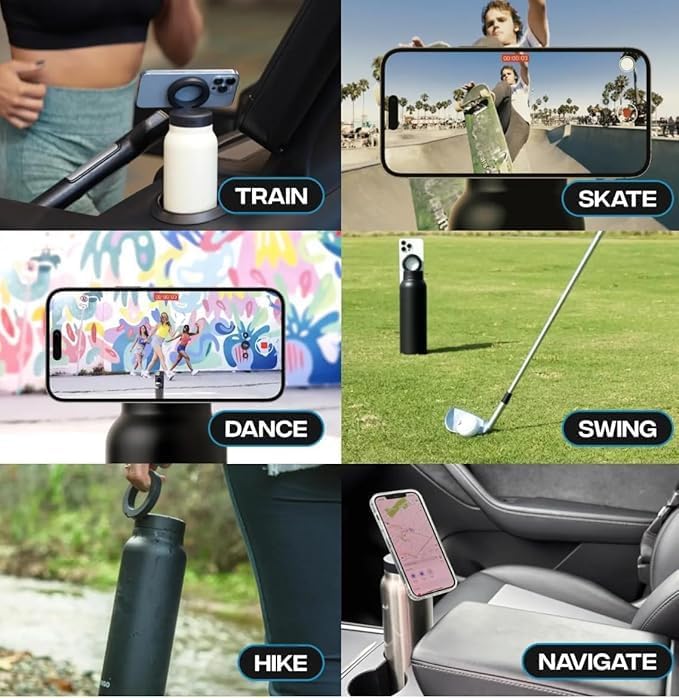 - Adaptable to any smartphone: This water bottle is Mag-safe compatible. Importantly, if your phone does not have a Mag-safe no worries: this insulated water bottle comes with an extra magnetic ring that securely and conveniently hold your device, making it perfect for your daily use and essentials for your travel needs.