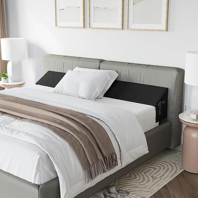 - BED WEDGE GAP FILLER PERFECTION: This bed wedge pillow for headboard is crafted to be the ultimate solution for closing the annoying gap behind your mattress, serving as a seamless headboard wedge pillow. Say goodbye to the frustration of losing pillows, phones, or even teddy bears. Our bed space filler effortlessly closes that gap, ensuring you keep your cherished items exactly where you need them. With a substantial 10" depth it expertly fills even the biggest gaps, making it the ideal choice.