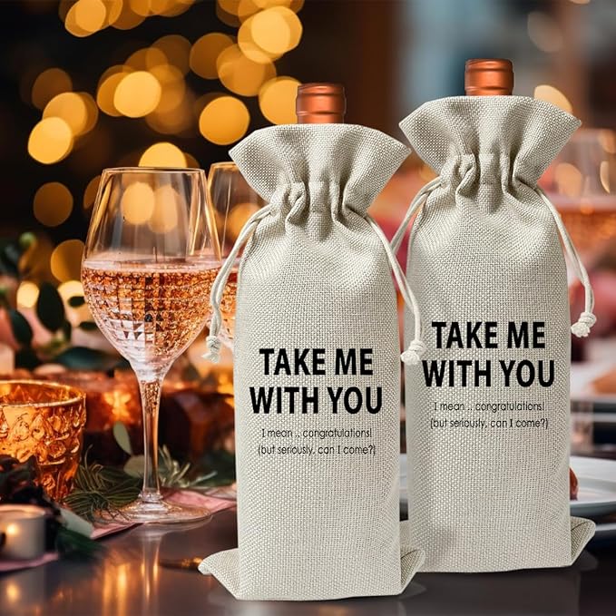 - PREMIUM MATERIAL: Our funny wine bag is made of high-quality cotton linen material fabric, printed double-sided, odorless, smooth appearance, durable and reusable. At the same time, it has very good quality and safe enough to protect or hold wine or champagne bottle.