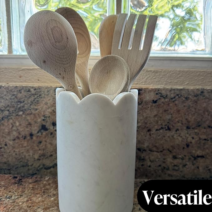 - Many Uses - Multiple functions such as a marble utensil holder for kitchen counter, office supplies holder, or use it as a flower vase.