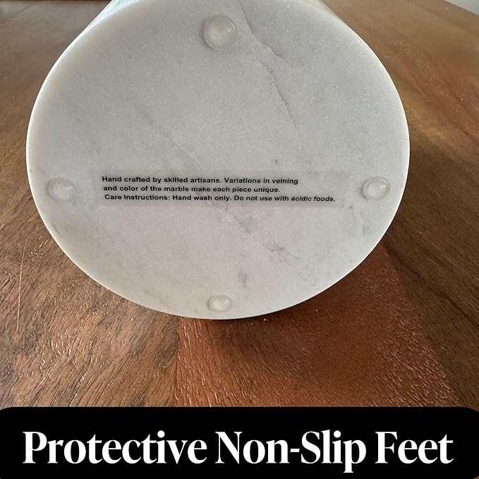 - Protective Non-Slip Feet & Scalloped Edges - Non-Slip Silicone Feet on bottom provides protection for your marble chiller as well as your countertop. Scalloped edges reduce risk of chipping.