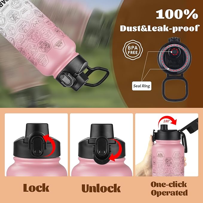 - β π³πππ-πππππ π«πππππ & π¬πππ ππ πͺππππ: Our stainless steel water bottles are equipped with a spout lid and a removable straw that free you to drink water the way you want.With just a click of a button, you can effortlessly open it with one hand.Our spout lids seal well and come with a handle to make it easy to carry.