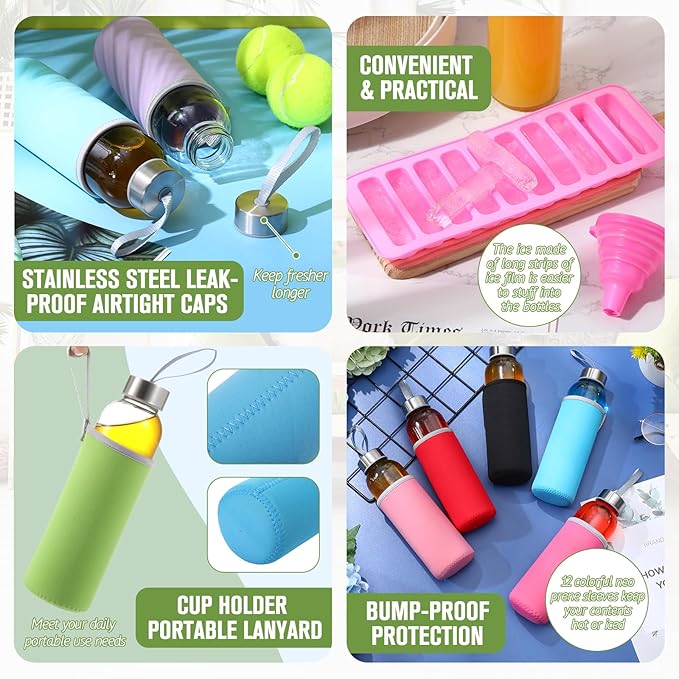 - Designed for Convenience: glass bottles about 8.66 x 2.6 inches/ 22 x 6.6 cm, ideal for outdoor use; With its lightweight design and easy hand strap of the protective case, this water bottle is suitable for carrying in a backpack, lunch bag, or you're out at the gym and camping