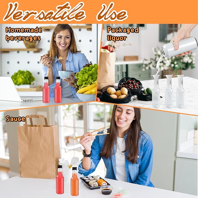 - 【Good Sealing】:Each plastic alcohol bottle has a black screw cap.When tightened appropriately,it will fit perfectly with the bottle,forming a good seal.This ensures that the food or liquid in the bottle does not leak and dirty your clothes or bags.