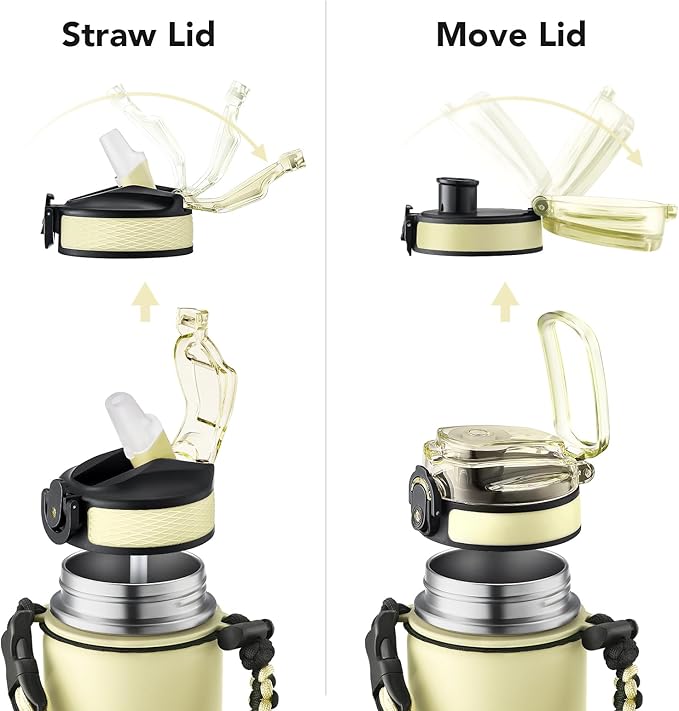 - Insulated water bottle 24 oz: 24 oz insulated water bottle has a matte finish and comes with 2 lids (Lid with Straw/No Straw) and a Paracord handle for easy portability; Its wide mouth makes it easy to fill, pour, and clean, and the leak-proof cap ensures worry transport.