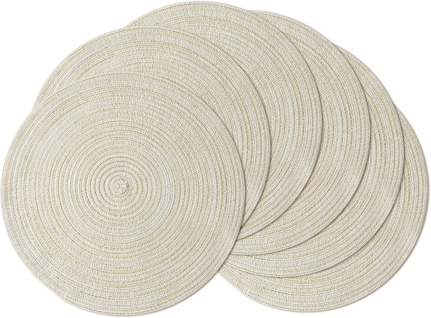 Leetaltree Round Placemats Heat and Slip Resistant Cotton Table Mats, Washable Bohemian Placemats for Dining Tables (White Beige, Set of 6)
