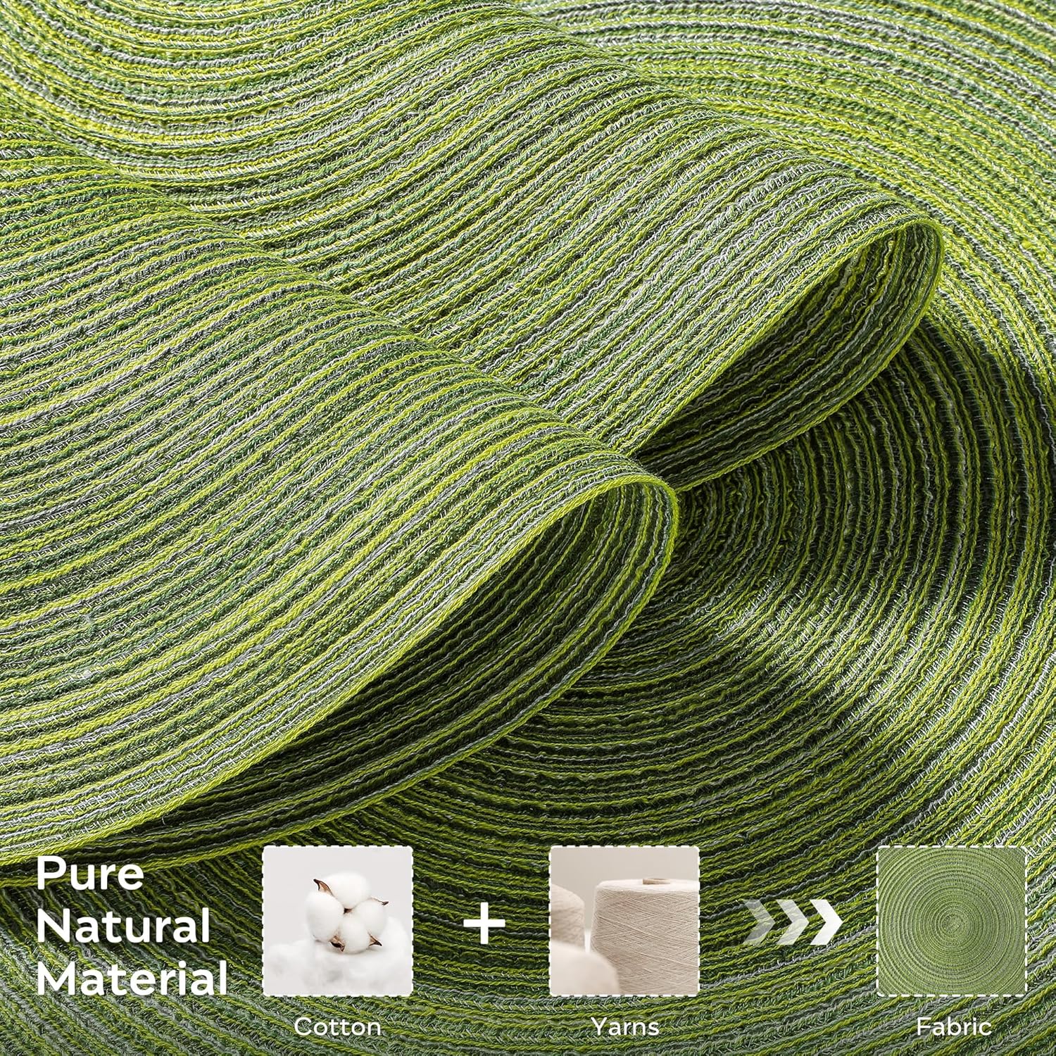 Leetaltree Round Placemats Heat and Slip Resistant Cotton Table Mats, Washable Bohemian Placemats for Dining Tables (Sage Green, Set of 6)