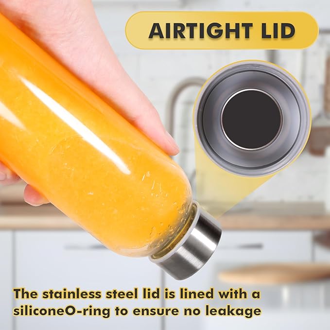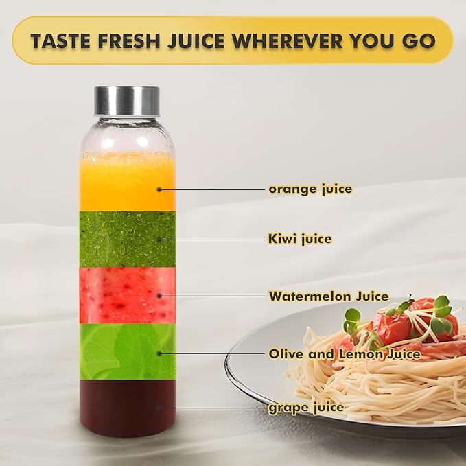 - 100% Leak-proof And Sealed :Each juice bottle has a stainless steel cap lined with a rubber O-ring that is 100% leak-proof. Suitable for outdoor activities, high-speed cars, etc., easy to carry and will not dirty the surrounding environment.