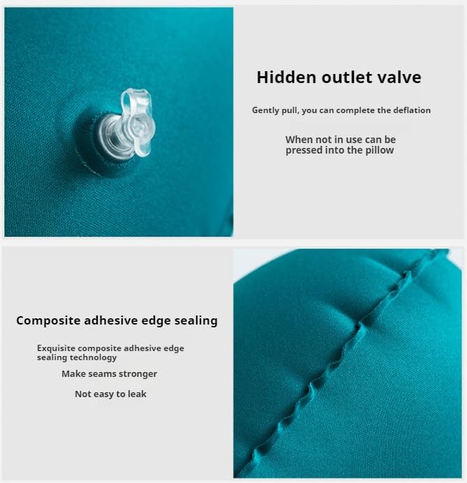 Travel Neck Pillow, Peacock Green, Inflatable U-Shaped, Velvet Exterior, Portable, Lightweight, 18.1 x 10.8 inches