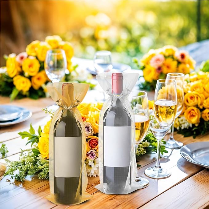 - Drawstring Design: Each organza sheer wine bag features a satin drawstring ribbon that makes it easy to open and close the bag. The drawstring can be effortlessly tied into a bow to enhance the overall display.