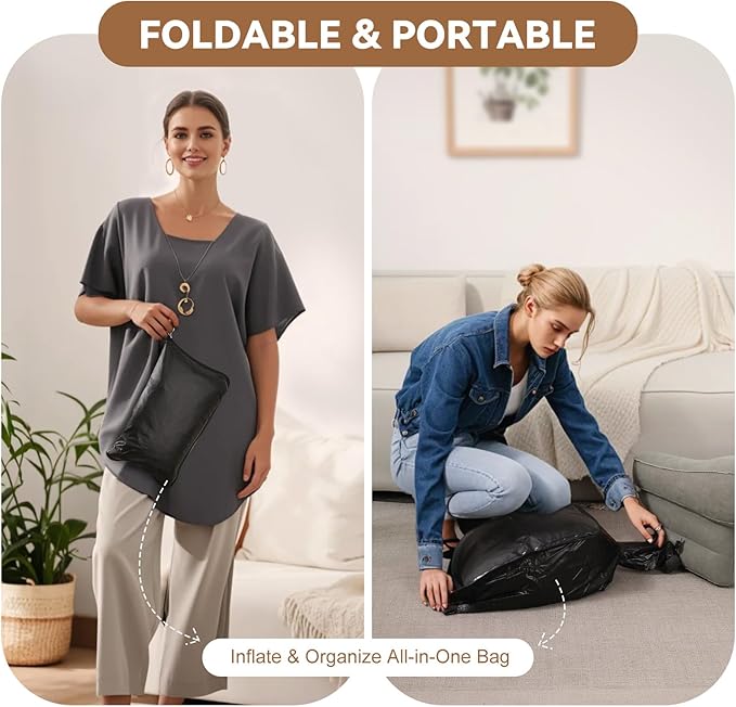 - Inflatable & Portable: The reading pillow boasts a rapid inflation design with three valves for swift filling and easy deflation. The included inflator bag not only inflates the pillow in 30 seconds flat but also doubles as a convenient storage bag. Unlike bulky foam reading pillows, our lap desk pillow folds down to a compact 13-inch bag.