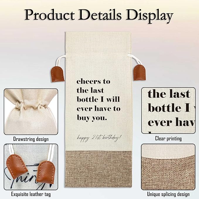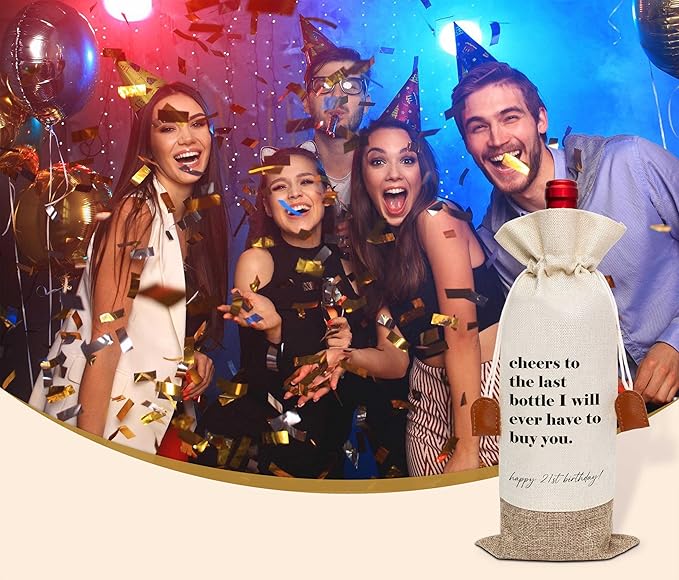 21th Birthday Wine Bag, Cotton Linen Wine Gift Bag With Drawstring, Wine Champagne Bottle Gift Bag, 21st Birthday Gifts Wine Bag for Woman Her Girl Friend Sister, 21th Birthday Party Favors-20