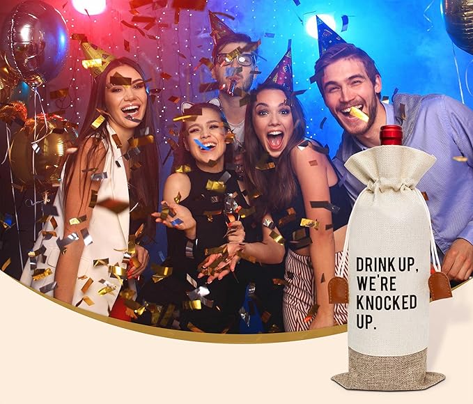 Woukaup Pregnancy Announcement Wine Bag, Wine Champagne Bottle Gift Bag, Cotton Linen Wine Gift Bag With Drawstring, Baby Announce, Pregnancy Announcement Gift Grandparents, Friend Aunt Uncle-18