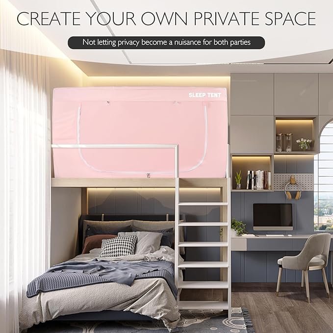 BORNA Bed Tent Twin Bed Canopy for Indoor Portable Light Reducing Sleeping Canopy for Kids and Adult,Bunk Blackout Tents Breathable Privacy Space Tent Mosquito Netting for Bed(Macaron Pink)