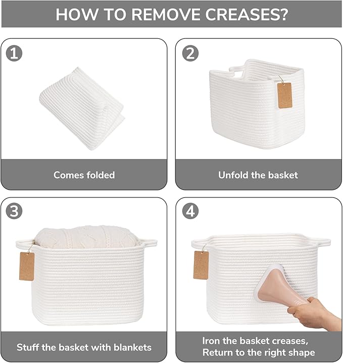 - Note: The decorative basket is folded for transport, it will quickly turn back to its elegant shape when you fill it with some towels or clothes, an iron is also a good idea