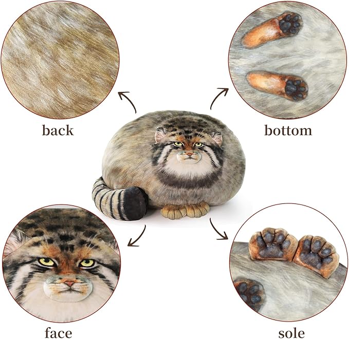 Steppe Cat Plush, Cat Stuffed Animal 35cm/14inch, Pallas Cat Plush Pillow, Cute Plushies for Girls, Soft Plush Pillow, Throw Pillow Doll Decoration Doll Gift for Kids Boys Party Christmas