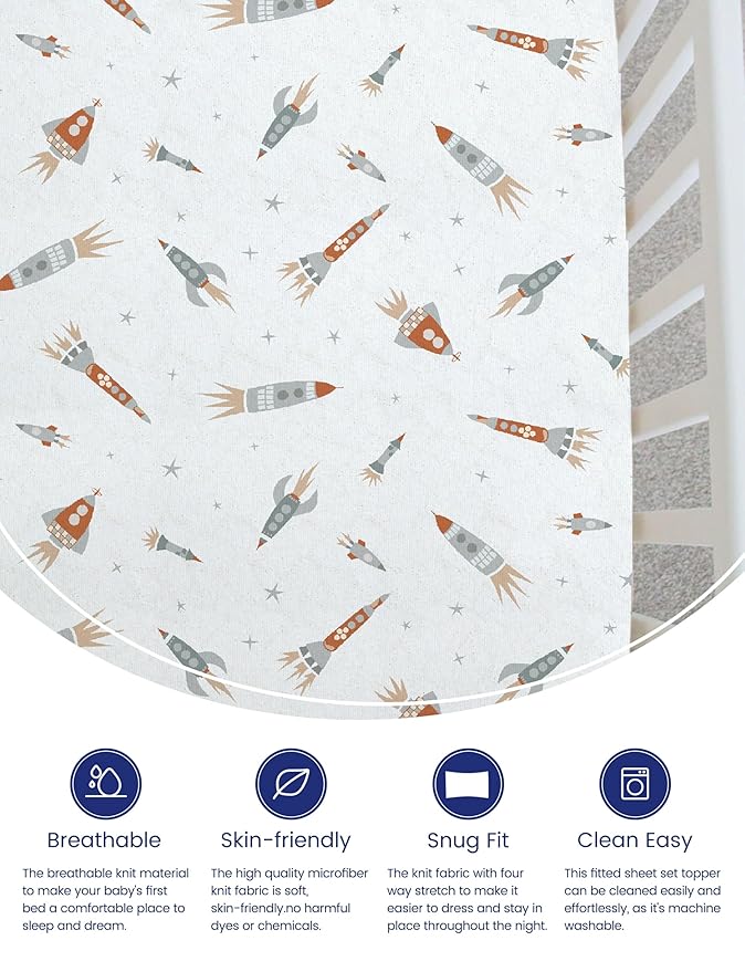 TotAha Premium Stretchy Space Crib Sheets (2-Pack)-Hypoallergenic, Silky Comfort, Buttery Soft, Calming Effect, All-Season Jersey-Knit Sheets, 9'' Extra Deep Pocket