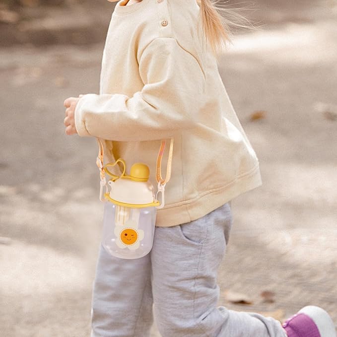 - EASY TO CARRY: Featuring a soft heart-shaped silicone handle, our kids water bottle with straw is easy to carry for little hands, promoting hydration on-the-go with its child-friendly design.