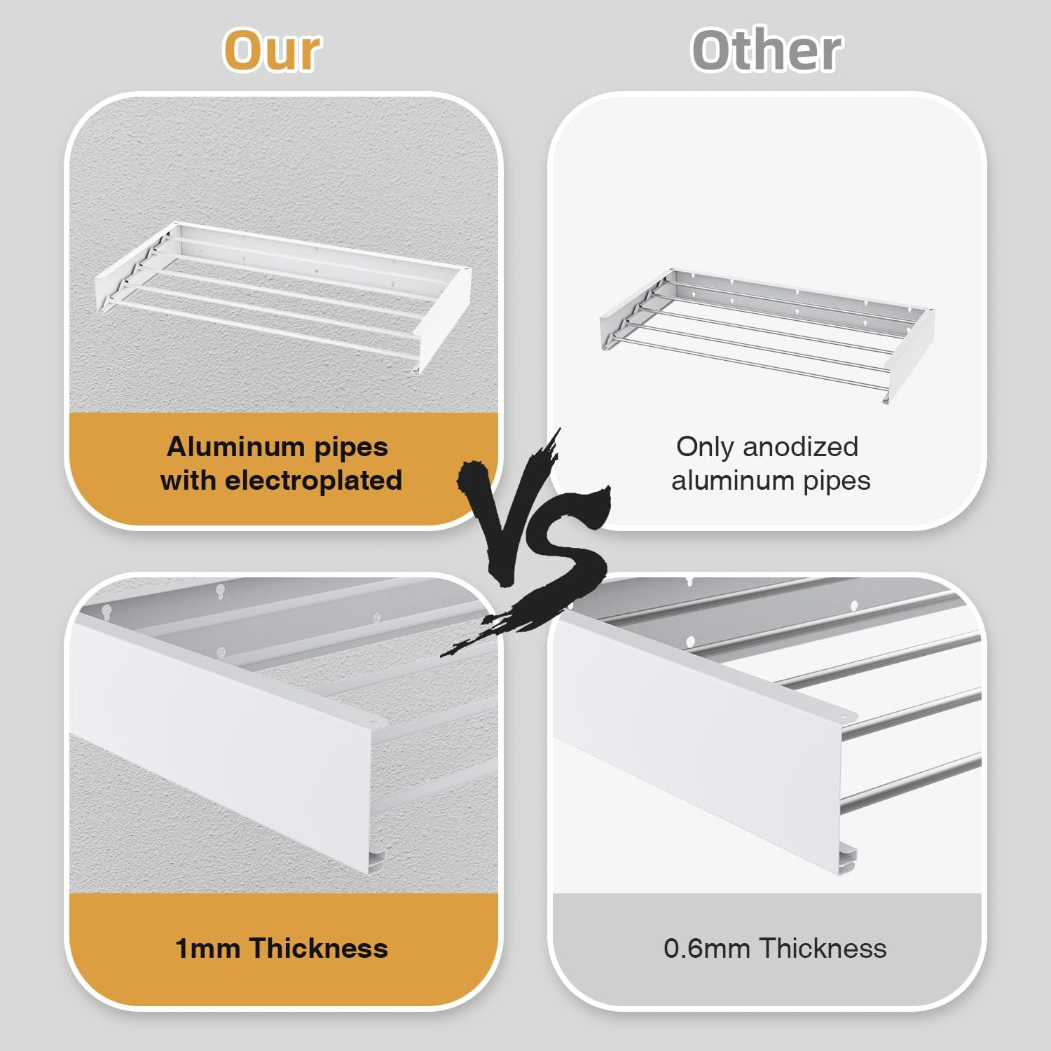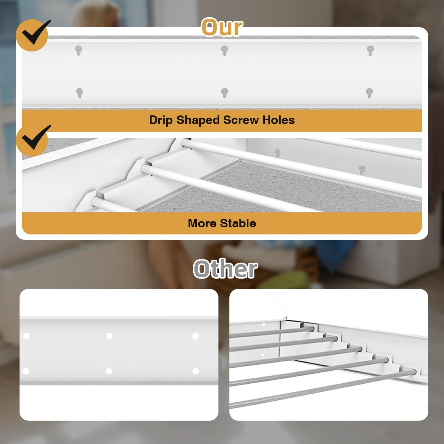 - Heavy Weight Capacity: Solid structure, main frame 1.4mm thick, strong bearing capacity and stability, rust-proof and wear-resistant. Foldable wall mounted clothes drying rack: 5 heavy aluminum rods, equivalent to 13.2 feet of linear suspension line, can withstand 60 pounds of weight. Use this expandable clothes hanger in your laundry and bathroom to create a flexible and convenient clothes hanging system.