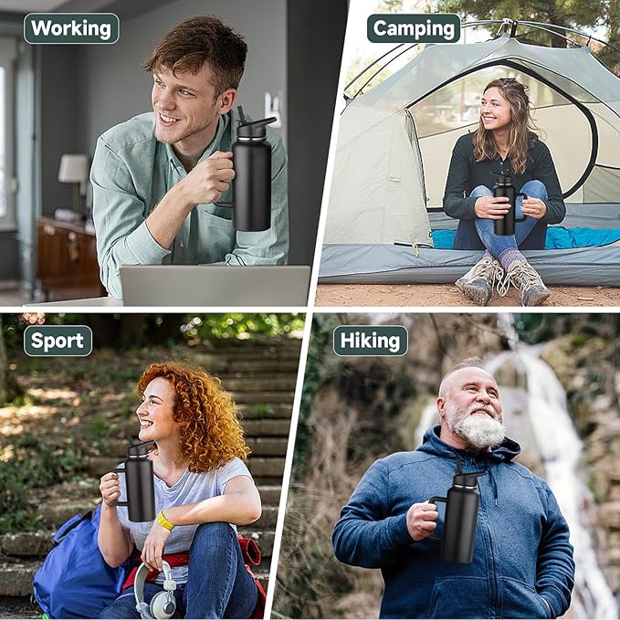 - 💦【Perfect Travel Companion】This 32 oz coldest water bottle with handle comes with 1 x straw lid, 1 x spout lid, 2 x straws, 1 x straw brush, and 1 x Bottle brush, making it the perfect kit for on-the-go hydration. Great for workouts, travel, or as your office companion. We value customer satisfaction and offer a 100% satisfaction guarantee. If you encounter any issues with the insulated bottle, please contact us.