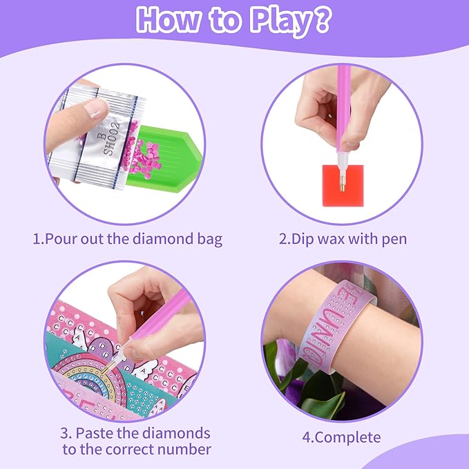 - 【DIY Diamond Art Bracelet Making Kit】- Includes 3 diamond art bracelets, easy to play, adjustable size design and comfortable to wear, perfect for children's small hands, girls can use imagination and creativity to DIY their own bracelets, improve children's hands-on ability and hand-eye coordination