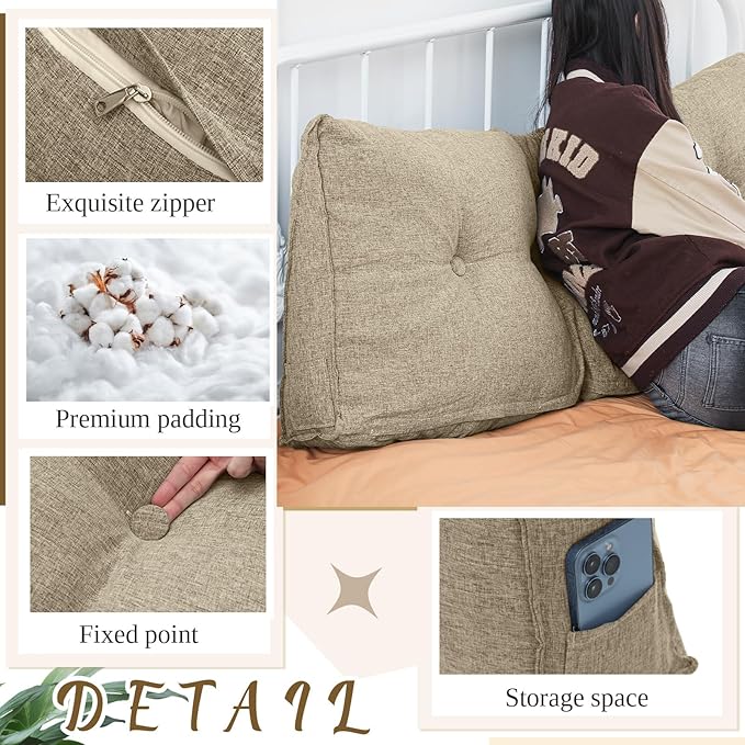 - Enough for Your Needs: the package comes with 1 piece of bed rest reading pillow, colored in khaki gray, with removable and washable cover, offering comfort to your home, bringing proper support while you are reading or resting