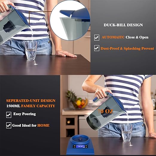 - 2.Unique Feature: Filsoit Water Purfication Pitcher designed with separated-parts for easily carry and duck-shape lid to prevent splashing when pouring water.