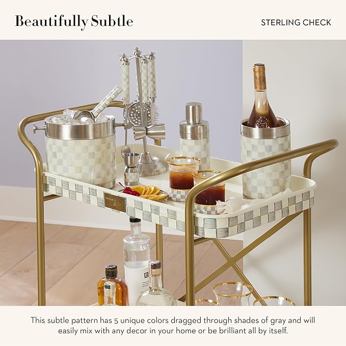 MACKENZIE-CHILDS 3260 Wine Cooler, Champagne and Wine Ice Bucket, Wine Bar Accessories, 1 Gallon, Gray-and-White Sterling Check
