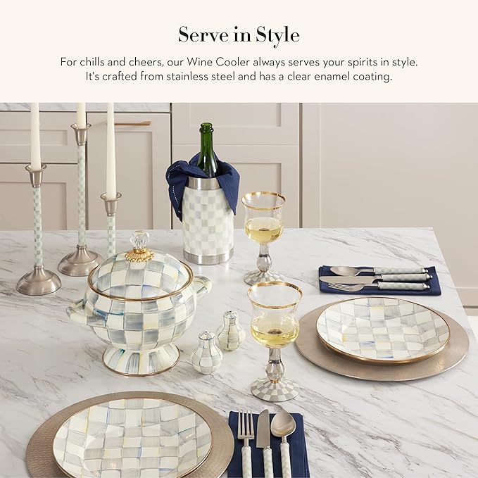 MACKENZIE-CHILDS 3260 Wine Cooler, Champagne and Wine Ice Bucket, Wine Bar Accessories, 1 Gallon, Gray-and-White Sterling Check