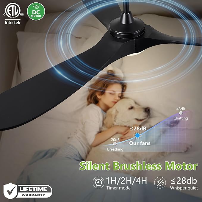 - 【SILENT BRUSHLESS DC MOTOR】The modern ceiling fan features 6 speed levels and a timer function. It operates quietly, is energy-saving, and comes with a reversible function. Enjoy the Haipeel ceiling fan in both winter and summer