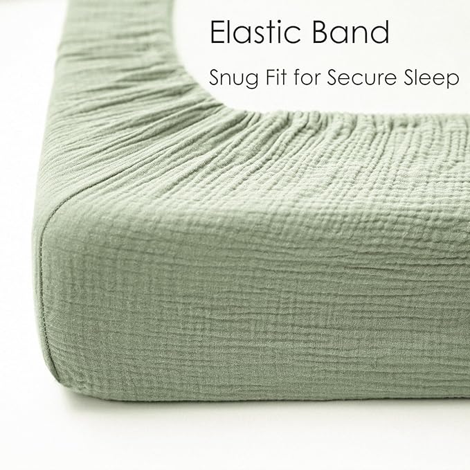 - Soft and Breathable: Crafted from 100% Muslin Cotton, the baby crib sheets are a tender embrace, offering a cloud-like softness and excellent breathability for your baby's sweetest dreams.