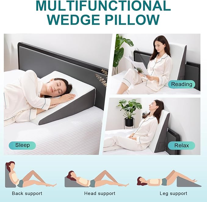- Versatile Sleeping Wedge Pillow: The 7.5-inch height wedge pillow is suitable for relieving acid reflux, neck and back pain. Elevate your head, feet or legs to improve sleeping posture and provide you with maximum comfort. It is a wedge pillow suitable for sleeping.