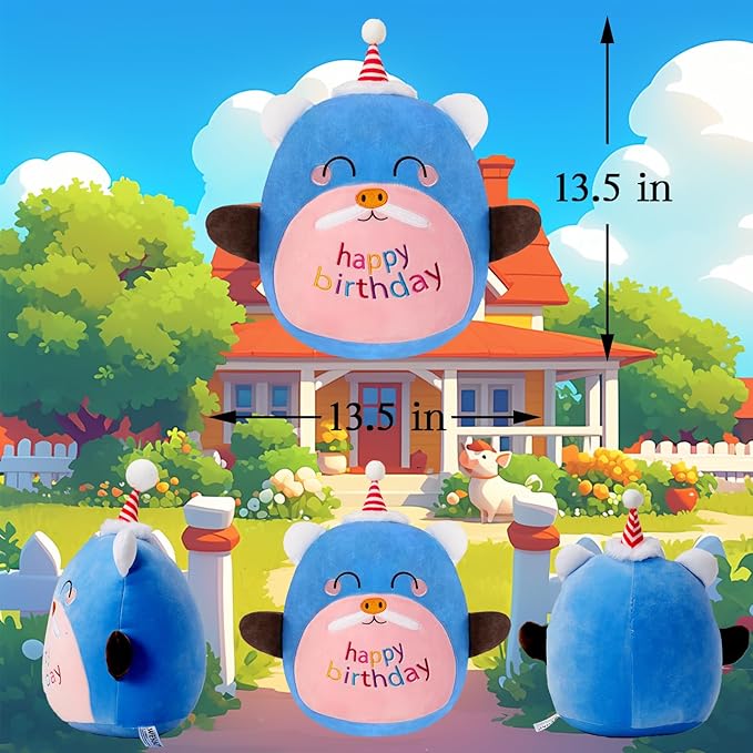 - 💙ORIGINAL DESIGN: This Birthday Pig Plush Pillow is a Loren J Designer Original! A brightly colored birthday hat, smiling eyes that make you feel happy, and the words "Happy Birthday" embroidered on his belly are all elements that add to the unique charm of this birthday pig. Add the Birthday Pig Plush Pillow to your plush pillow collection!