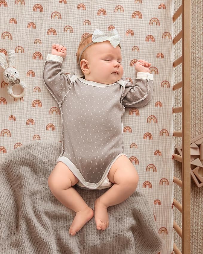 - Easy To Care: Made from premium double-layer fabric, our muslin fitted crib sheets are durable to use, staying soft and no shrinkage, fading, or pilling after machine washing