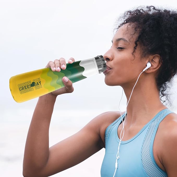 16oz Green Bay New Cola Bottle Insulated Water Bottle Stainless Steel Thermos Cup, Reusable Water Bottles Leak Proof Metal Sports Water Bottle