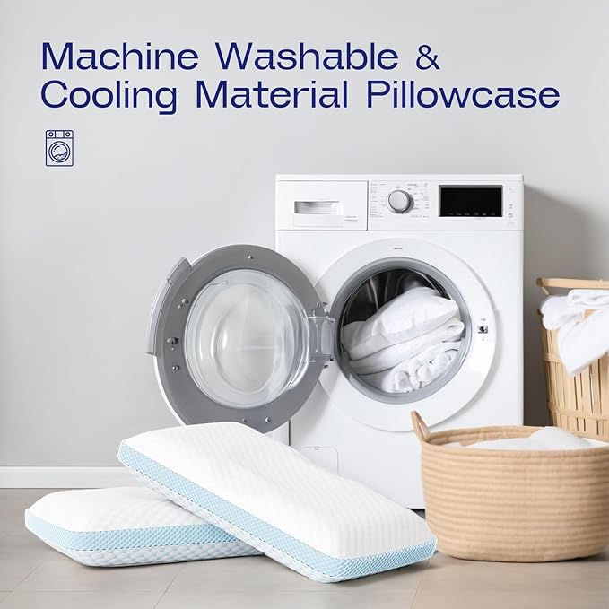 - <Machine Washable Cover> The memory foam contour pillow provides soothing support for the neck and body. The soft, comfortable, and breathable pillowcase ensures maximum airflow, improving comfort and sleep quality. The ergonomic pillows for sleeping compacts with a smooth zipper, it is removable and machine washable.