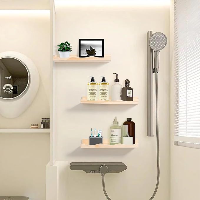 - Floating Wall Mount Durability:Each bookshelf is handcrafted with natural pine wood, resulting in unique variations and slight differences in appearance. This adds to the charm and character of the product, making each piece one-of-a-kind,allowing it to hold numerous pictures and items without deformation or damage,their size (15.7×4.5×2inches).