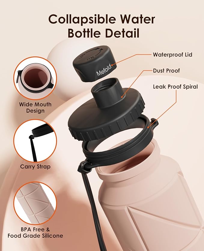 - Leak-Proof: Equipped with a reliable, leak-proof cap, this collapsible water bottle avoids accidental spills and leaks, keeping your belongings secure and dry. If you fill the travel water bottle with water before placing it in the bag, ensure sure the cap is properly screwed on.