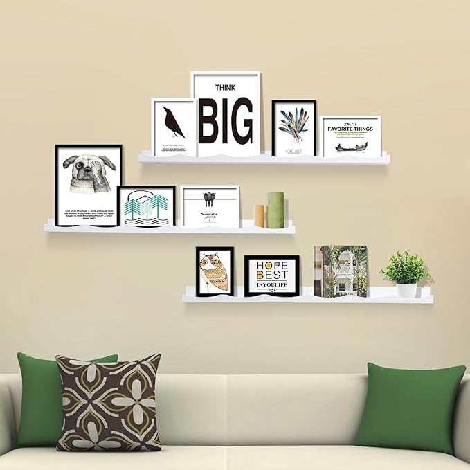 AZSKY Picture Ledge Shelf, 36 Inch Floating Shelves with Lip, Picture Shelves for Wall with Ledge(White)