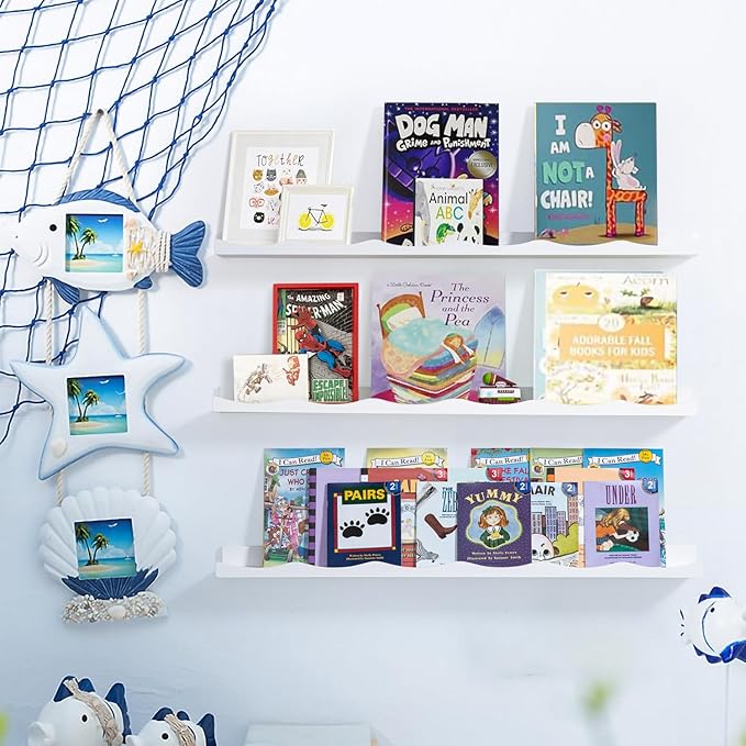 - Nursery Shelves Multi-functional Design: In addition to displaying pictures, picture ledges can also be used to showcase photo frames, paintings, vases, and other decorative items. providing a versatile solution for your child's room.
