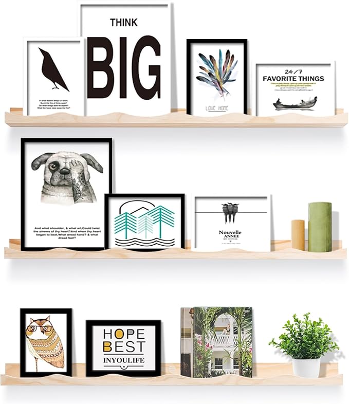 - Nursery Shelves Multi-functional Design: In addition to displaying pictures, picture ledges can also be used to showcase photo frames, paintings, vases, and other decorative items. providing a versatile solution for your child's room.